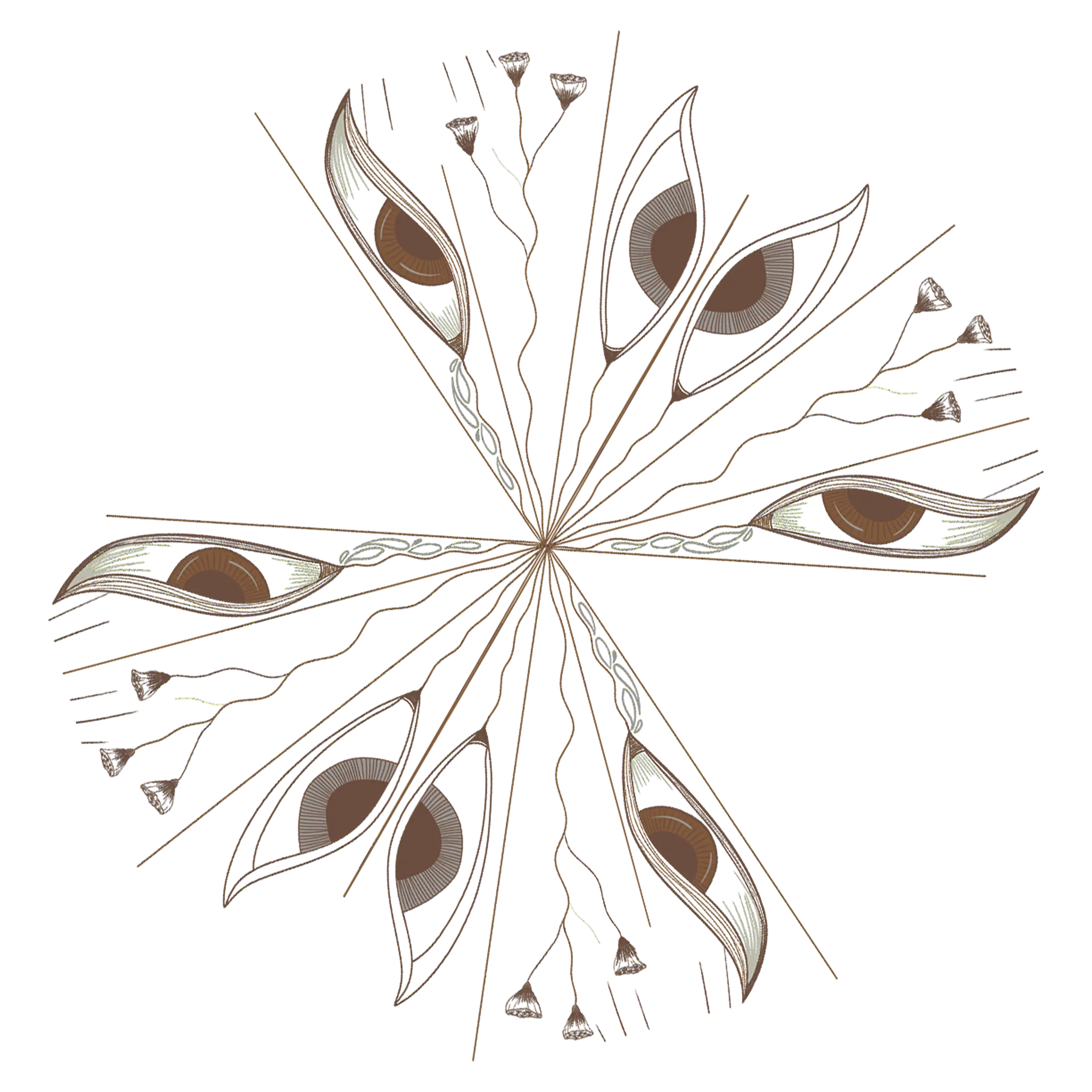 Zasnovano na muškom principu introvertnosti, oko simbolizuje povezanost sa sopstvenim „ja“ i snagu koja nas prizemljuje – tiho, ali nepokolebljivo, nasuprot buci i potrebi za dokazivanjem. Oko vidi i kada ne gleda, oslikavajući energiju unutrašnje svesti i unutrašnje moći