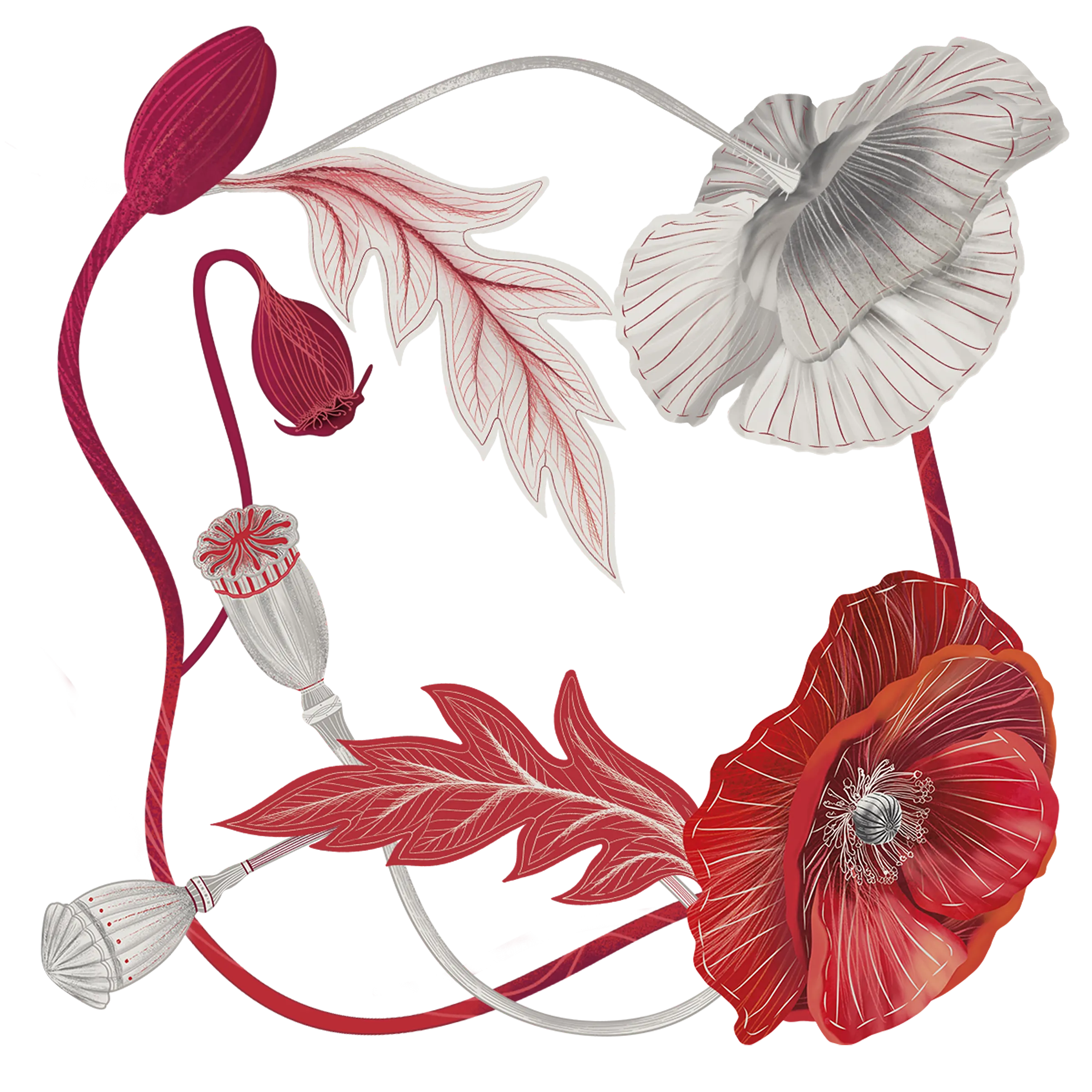 Mak na ilustraciji podseća na prolaznost i brzinu života. Kroz četiri kvadranta prikazane su njegove faze: