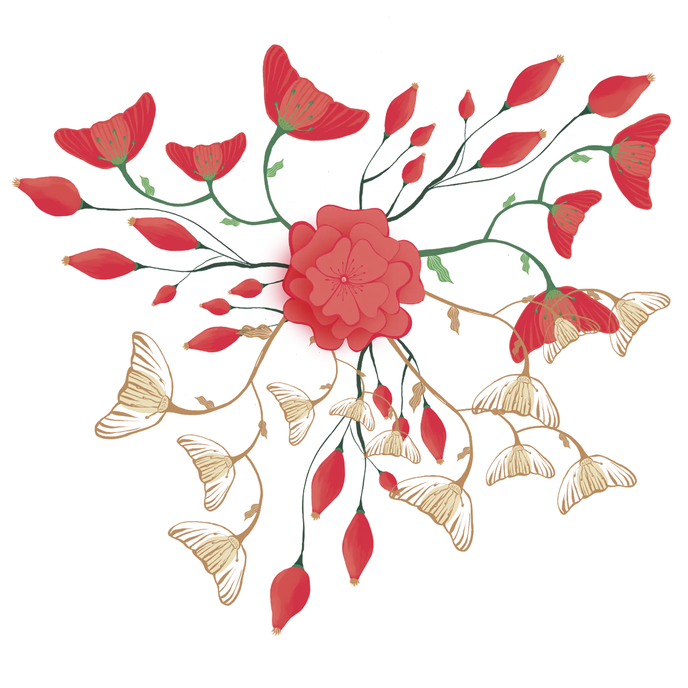 • Crveni mak u punom cvetu uz Sunce – vrhunac snage, života i strasti.