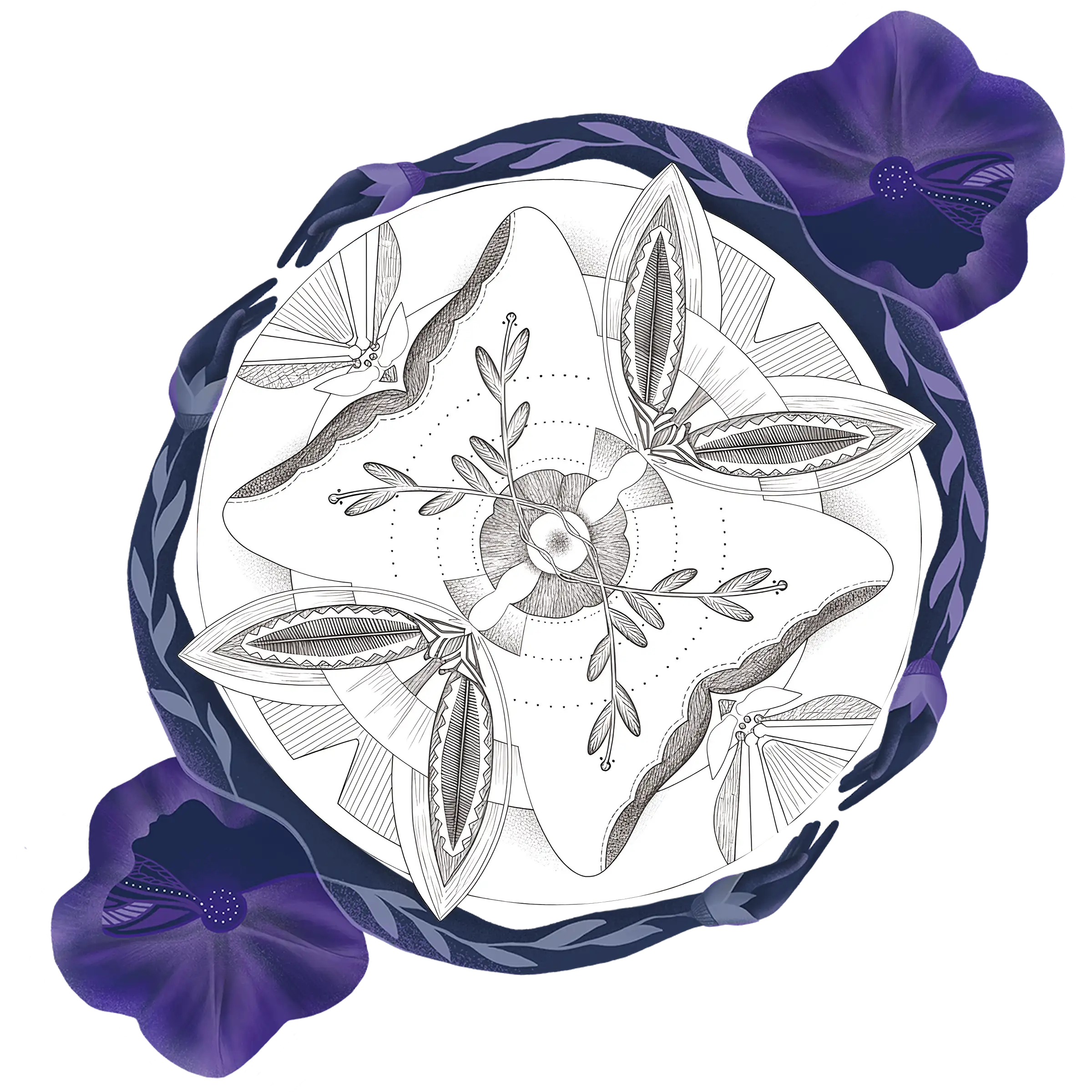 Ilustracija prikazuje da smo celina, kada cvetamo iznutra, cvetamo i spolja. Širimo se u beskonačnost i iz nje se vraćamo svom centru. Naše biće se otvara, naša čula i telo bude se prema nama samima, dok sebe držimo, čuvamo i grlimo.
